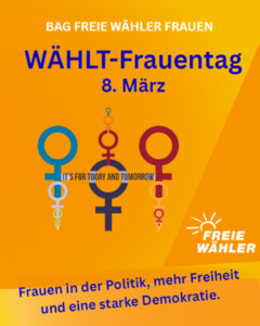 Die Frauen der FREIEN WÄHLER rufen deshalb unter dem Motto „Wählt-Frauentag“ dazu auf, Frauen in der Politik stärker zu unterstützen und ihre Stimmen bei Wahlen sichtbarer zu machen.